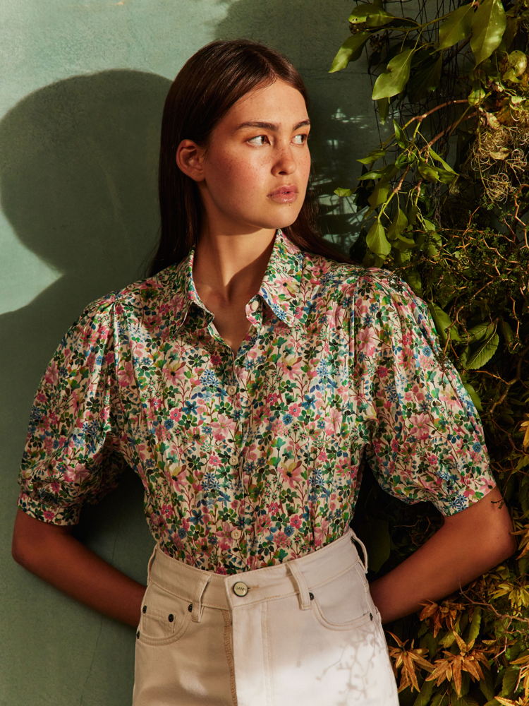 Dreams of Summer Puff Sleeve Shirt - Green, £155, Botanical Atlas by Liberty Fabrics I www.libertylondon.comEmbarking on a panoramic voyage across an imagined landscape, the Magical Plants scarf makes reference to the Indian garden paintings and stylised trees of the Enchanted Wood interiors fabric, reimagining its layout to centre leafy trees around a delicately painted frame. Printed upon a luxurious silk cashmere blend, scarves can be dressed down with washed denim, or paired with a cotton summer dress to elevate the simplest of looks.