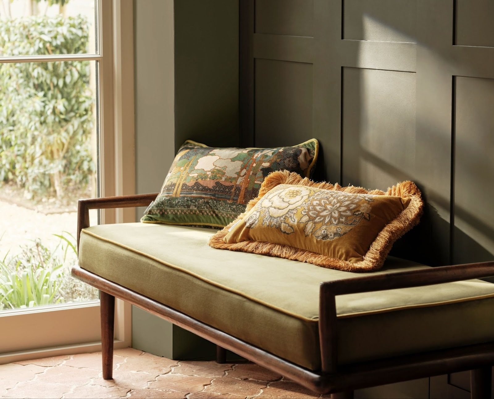 For this new season, Liberty launches a curated range of 21 new cushions across nine designs. Highlights include the archival classic, Prospect Road, reimagined at a smaller scale after its recent launch as the Prospect Mural in The House of Liberty wallpaper collection this January. The iconic Art Nouveau revival features subtly arranged clusters of trees in a dreamy, jewel-toned setting. Now available as a rectangular cushion in two colourways.